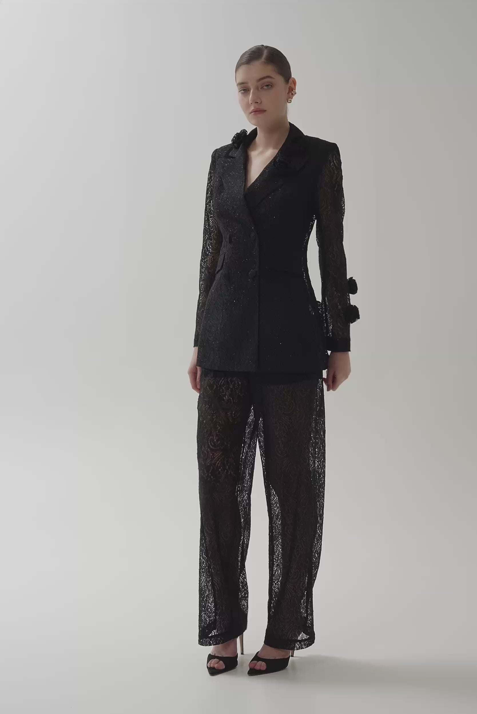 Wide-leg lace trousers in black